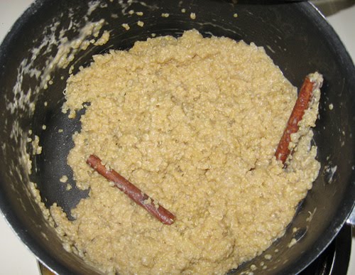 This is the cooked Quinoa with a few cinnamon sticks thrown in for added holiday flavor!